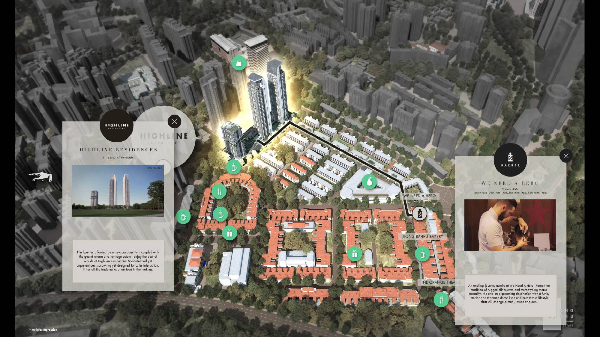 Secondly, a concise look at a full 360 experience of the ameneties and heritage sights of Tiong Bahru being brought to users.